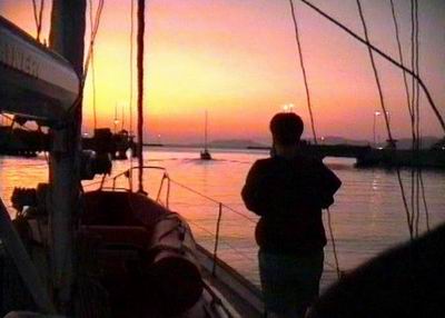 Der weitere Törn führte uns nach Lefkas, eine Insel, die mit dem griechischen Festland über eine flache, von einem Kanal durchzogene Landbrücke verbunden ist. Vorher sahen wir uns noch bei der Insel Meganisi mit dem Beiboot befahrbare Höhlen an. Auf Levkas liefen wir zuerst ihn den Ormos Vlychon ein, eine gänzlich vom Land umschlossenen Bucht mit einem urigen Dorf, vor dessen "Mini Market" man festmachen kann. Der Ladenbesitzer nahm die Leinen an. Wenn einem in Griechenland überhaupt ein Einheimischer beim Anlegen hilft, dann der Besitzer des nahen Ladens oder der Kneipier. So auch hier. Sogar Duschservice bot der Ladenbesitzer an. Am nächsten Tag liefen wir die paar Seemeilen durch den Kanal zum Ort Lefkas. Alles ist dort für Griechenland so ungewohnt flach und sumpfig, doch der Ort ist ganz hübsch. Inzwischen gibt es dort eine Marina. Damals lag man längs eines Stichkanals an einer sehr langen Hafenpier direkt im Ort. An der Carioca war schon wieder einiges kaputt. Die Lichtmaschine arbeitete nicht und der Außenborder fürs Dinghy hatte Probleme mit der Kühlung. Der örtliche "Yacht-Service" wollte reparieren, musste aber nach langem Hin und Her aufgeben. An der Lichtmaschine haben wir uns selbst versucht. Es war der Regler. Nach der alten Mechaniker-Behandlung (ein Hammerschlag!) ging er wieder. Abends war im Ort ein Fest mit einem exzellenten Blasorchester, das klassische Stücke spielte. Es wurde dann allerdings nachts sehr laut.